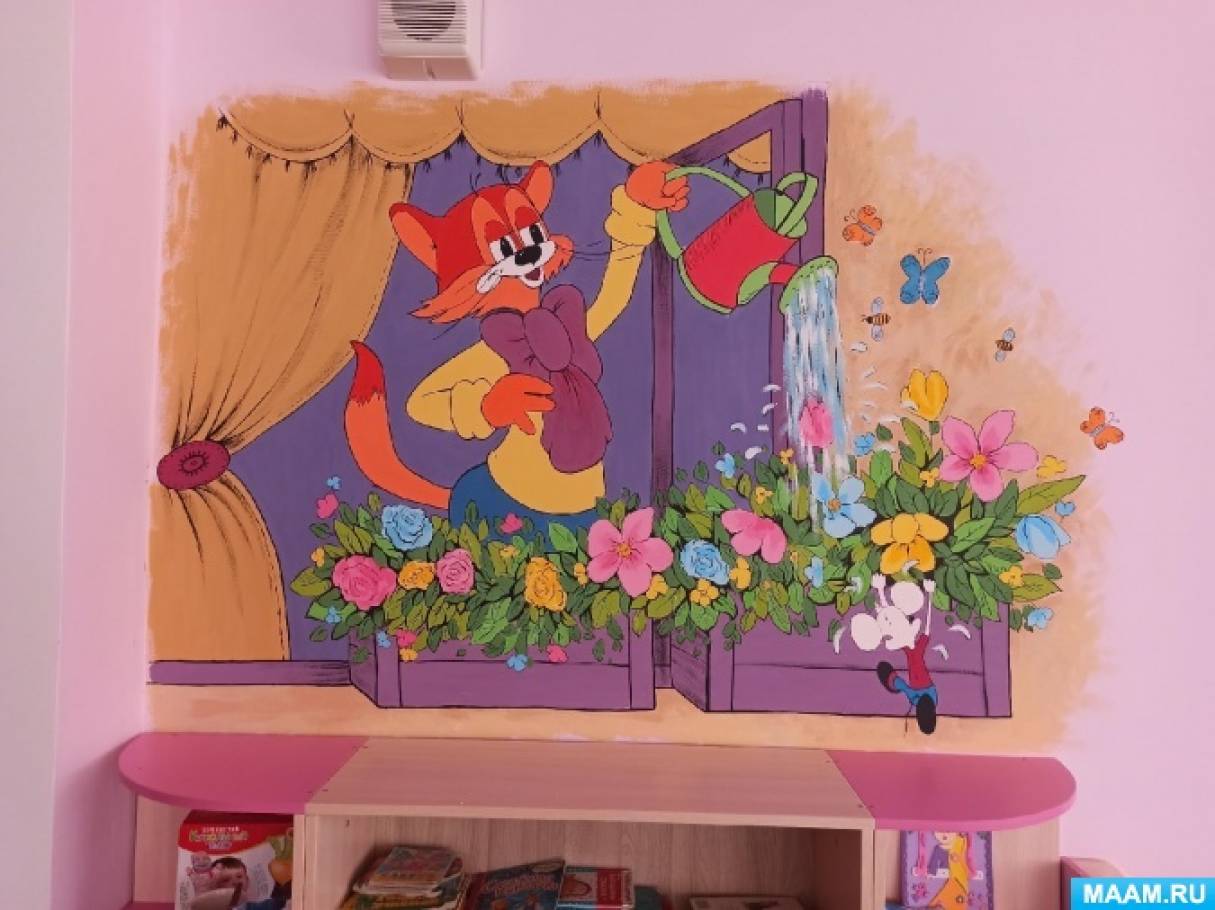 Оформлять группу в детском саду желательно цветными и насыщенными тонами. Сюжеты сказок и мультфильмов отлично подойдут для этого